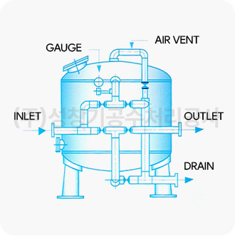 Raw water contains iron (Fe) and manganese (Mn) to varying degrees. Normally, it is colorless and transparent immediately after pumping, but as time passes, the Fe and Mn present in the water come into contact with the air and oxidize, generating and precipitating brown hydroxides. FEROXER or BIRM is a device that removes such iron or manganese in the water by applying the contact oxidation method. Generally, Fe or Mn in groundwater exists as bicarbonate, except in special cases. FEROXER is a device that uses FEROX, a special oxidation catalyst, to dissolve oxygen in the air in the raw water and pass it through, oxidizing iron or manganese while acting as a filter to filter and remove the oxides. The need for seasonal and seasonal manganese.