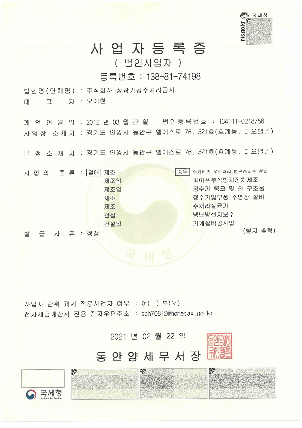 COPYRIGHT (C) 2025 Sung Chang Water Treatment Co.,Ltd. ALL RIGHTS RESERVED.